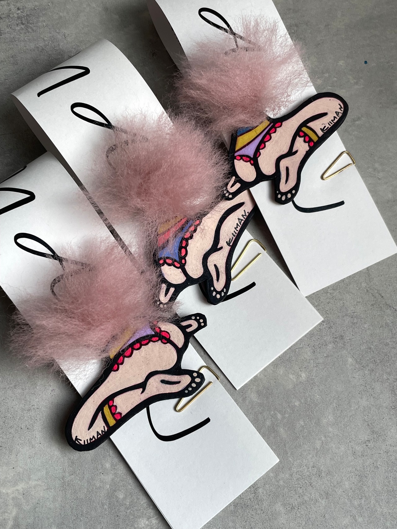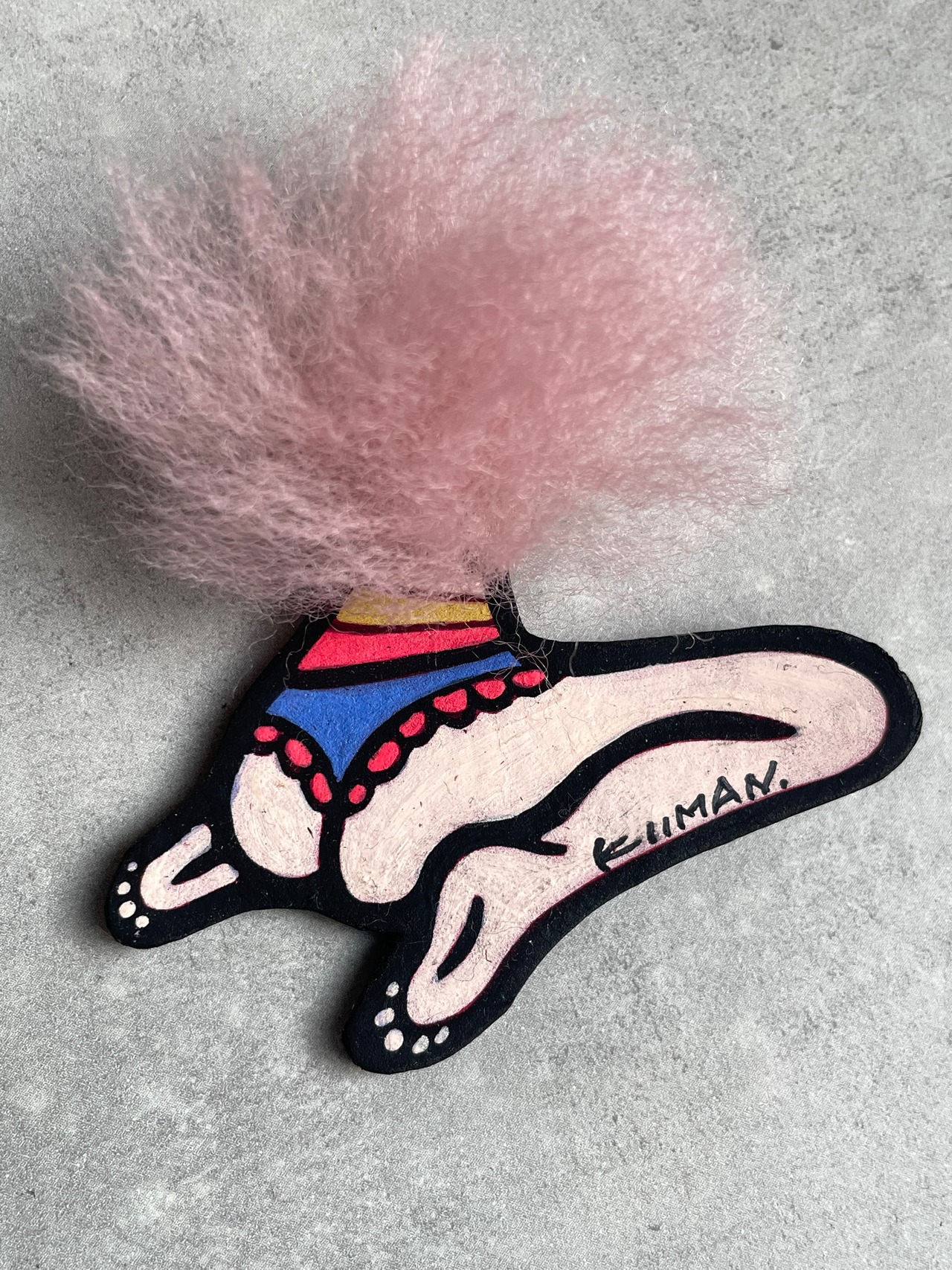 髪の毛はスモーキーピンクのファーが