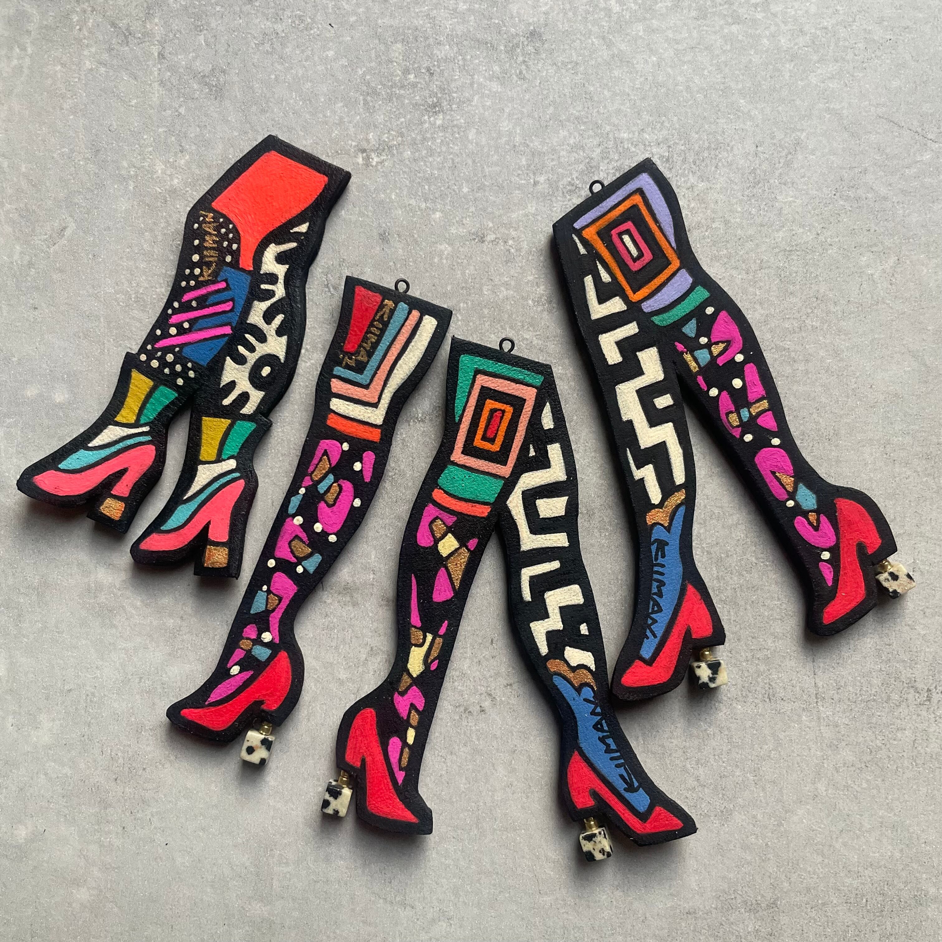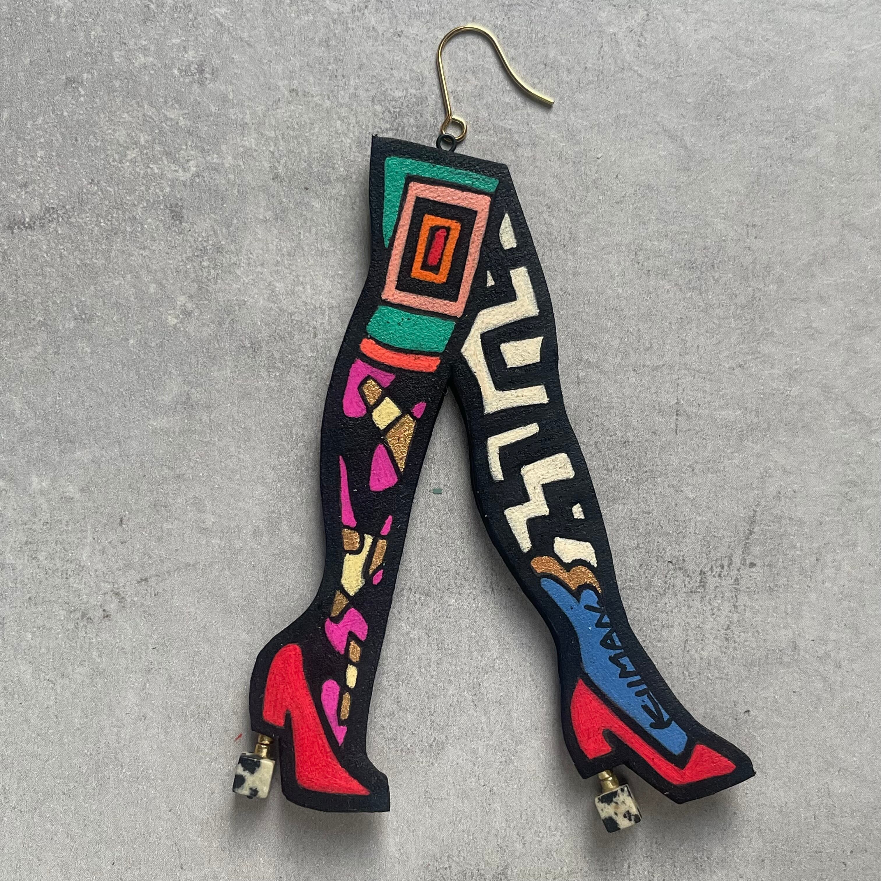 模様柄のタイツとブーツを履いた