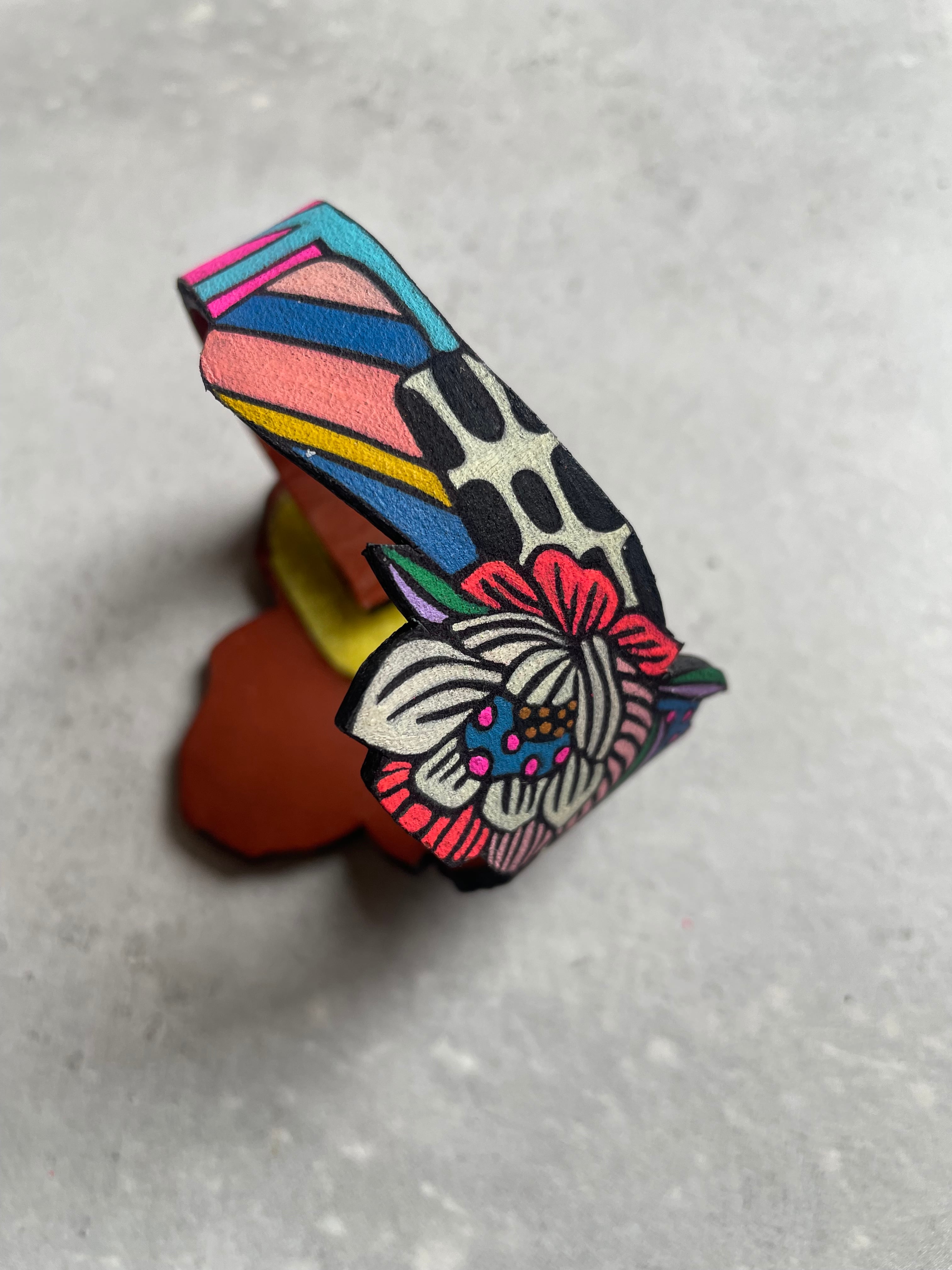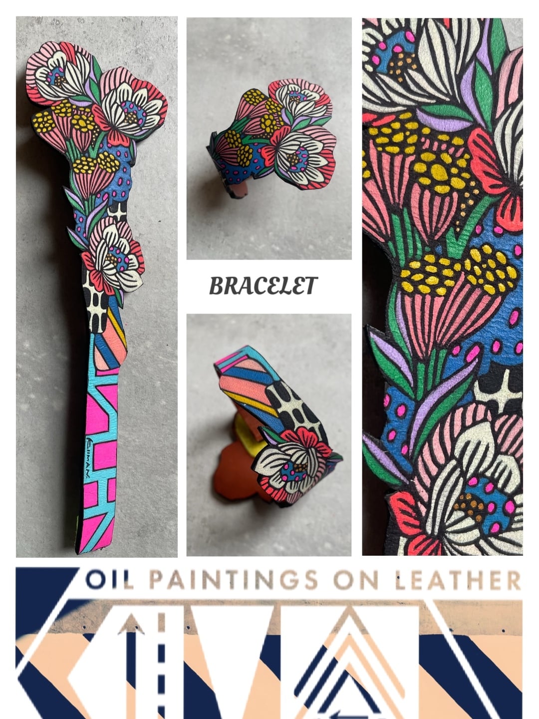 ヌバック(革)に油絵具で描かれたものです。