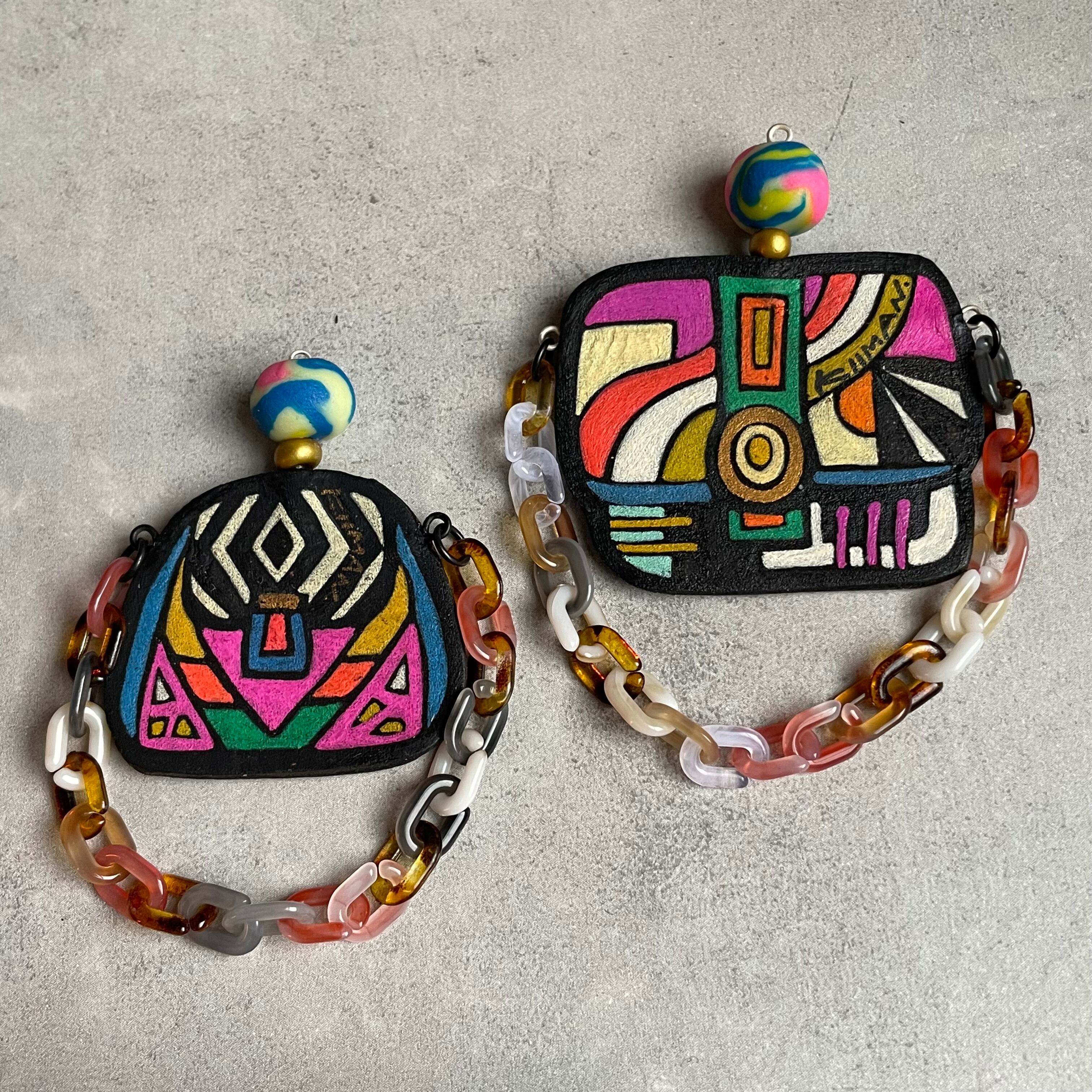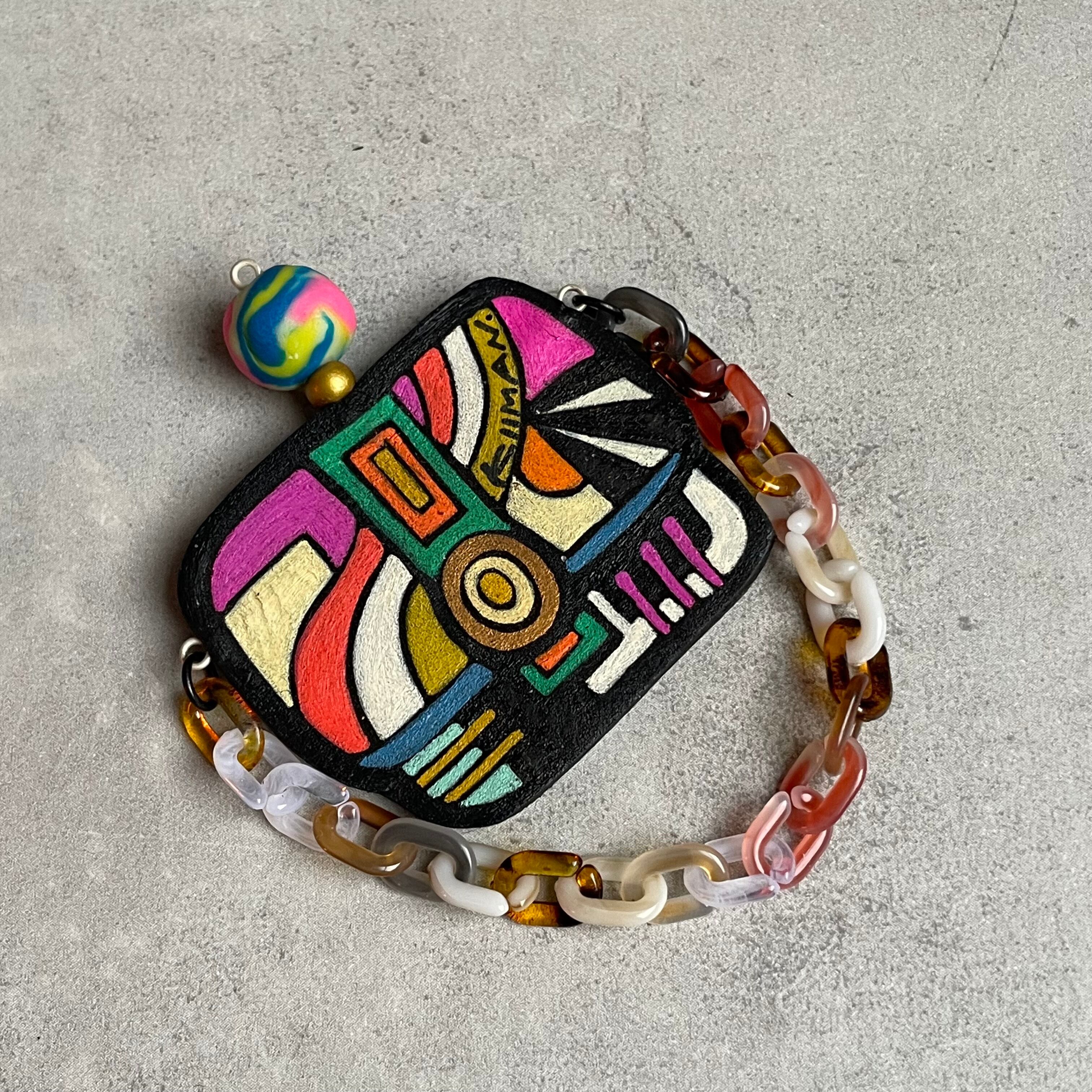 ポリマークレイ粘土とプラスチックチェーンと組み合わせて出来たヴィンテージ風バッグになります。