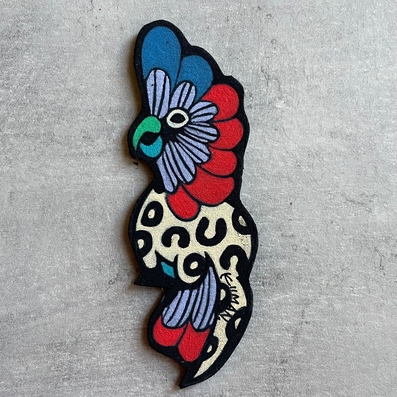 ヌバック(革)に油絵具で描いたアート作品です。