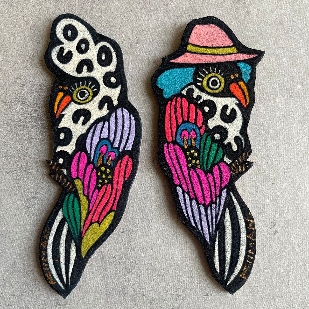 ヌバック(革)に油絵具で描いたアート作品です。