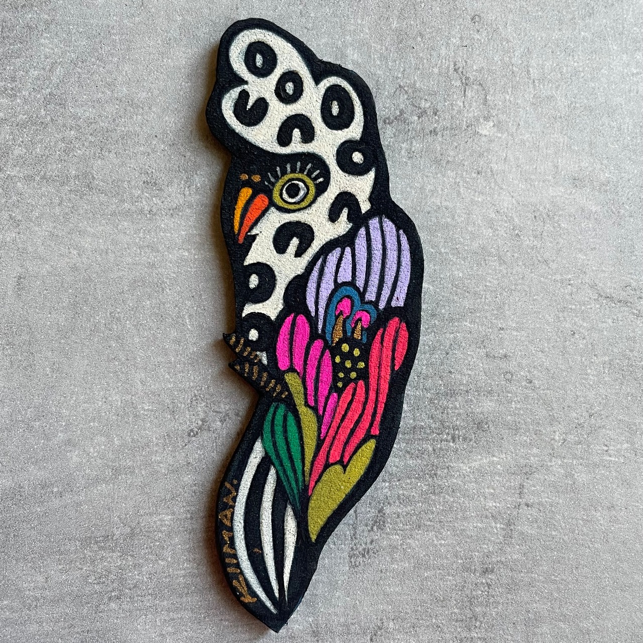 ヌバック(革)に油絵具で描いたアート作品です。